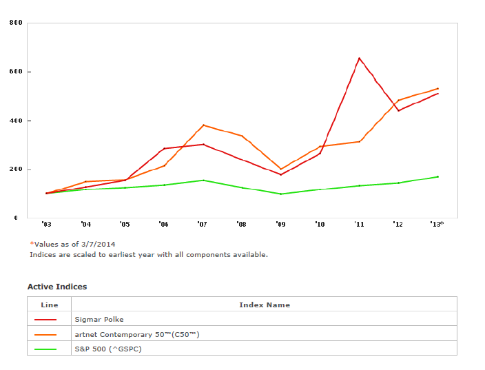 Now, with “Alibis: Sigmar Polke 1963–2010” set to open on April 19 at the Museum of Modern Art (the exhibition is co-organized by Tate Modern), Polke’s market is doing better than ever. Though Kiefer’s market has burned bright and steady since the 1980s, Polke’s, which in comparison has seemed less vibrant, may finally be catching up, and then some.